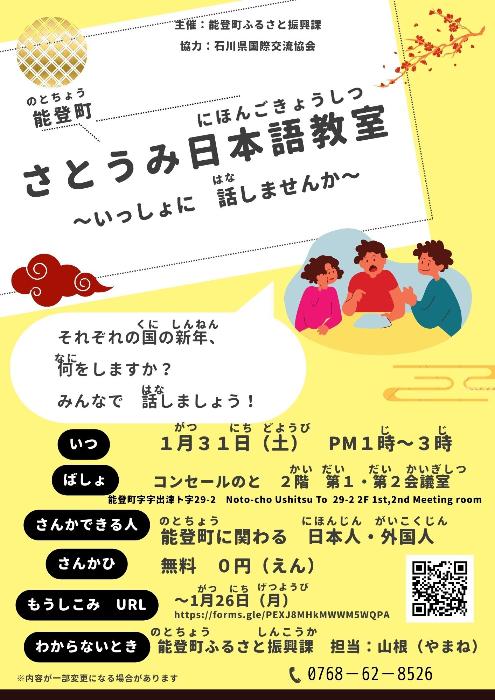 能登町に住んでいる外国人の皆さん、一緒に日本語を学びませんか?
